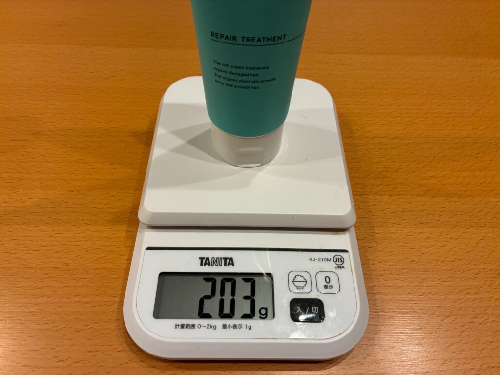 トリートメントは203gで、一般的なトリートメントと比べても重さが気になるわけではありませんでした。