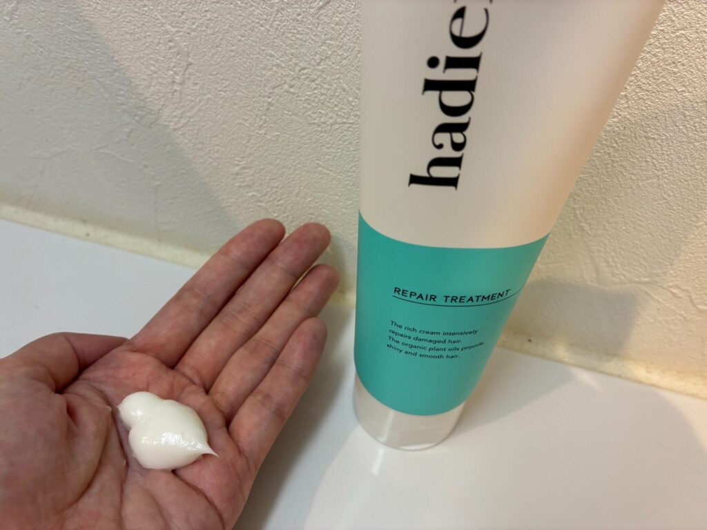 私は日々バタバタでゆっくりトリートメントをする時間がないので、週に2~3回できるときにハディエントのトリートメントでケアしています。